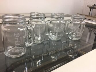 We have full rotation on all of our machines, we can engrave on any items, such as Yeti style cups, bottles, and containers.