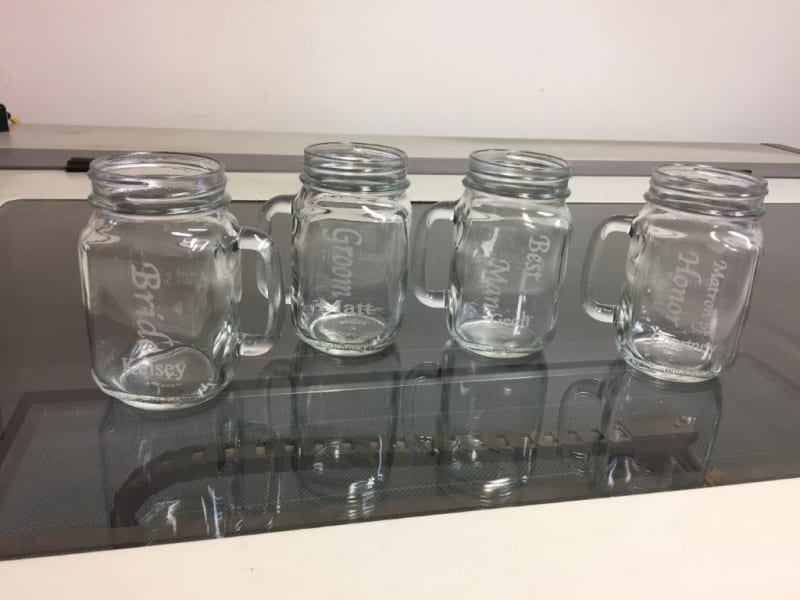 We have full rotation on all of our machines, we can engrave on any items, such as Yeti style cups, bottles, and containers.